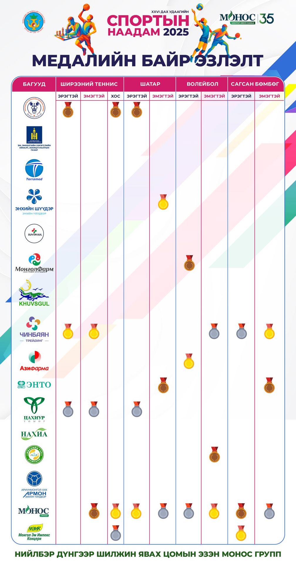 Тэмцээний нийлбэр дүнгээр Монос групп шилжин явах цомын 🏆эзэн боллоо.